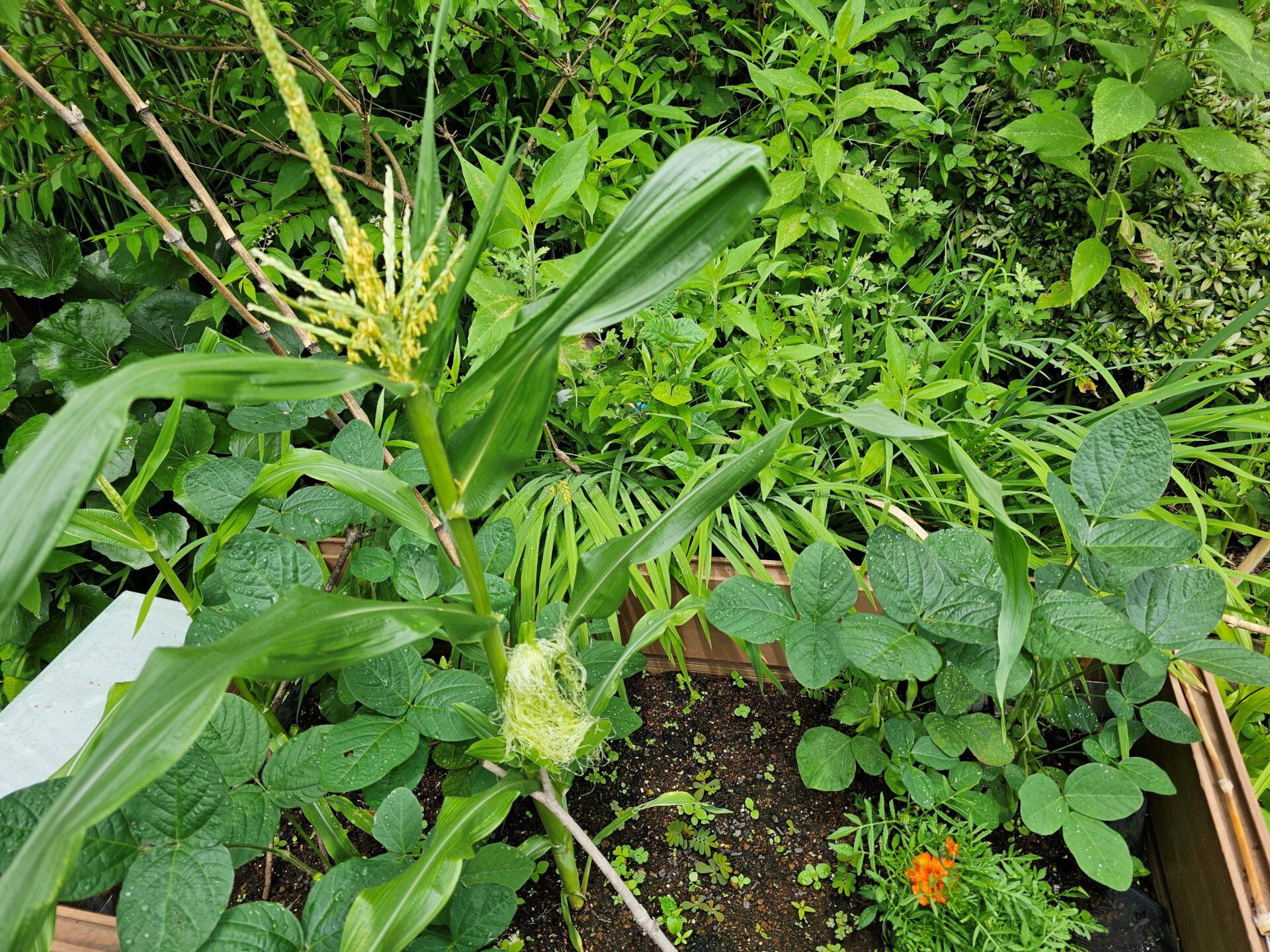 今回三保では、このコンパニオンプランツで、スウィートコーンと、エダマメという組み合わせで栽培しました。