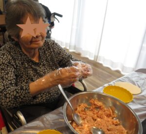 2階のユニットにて手作り餃子レクがおこなわれました!
