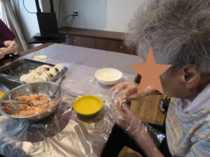 2階のユニットにて手作り餃子レクがおこなわれました!