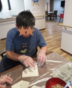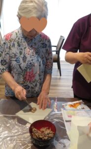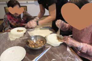 ベトナム出身の職員の指揮のもと、皆さんで巻いていきます