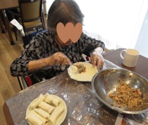 ベトナム出身の職員の指揮のもと、皆さんで巻いていきます