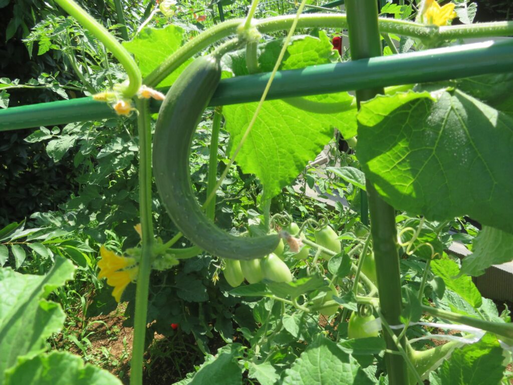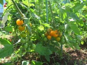 ミニトマトも赤いものと黄色のものがあり、大きい実を沢山付けていて毎日のように収穫できています。