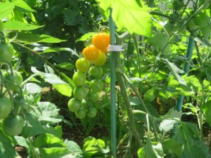 ミニトマトも赤いものと黄色のものがあり、大きい実を沢山付けていて毎日のように収穫できています。