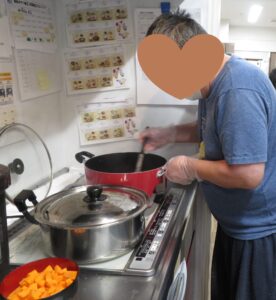 みなさんで人参やじゃがいもの皮を剝く作業から始まります