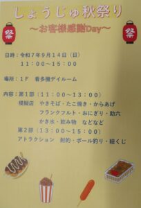 本日、『しょうじゅ秋祭り~お客様感謝Day~』を開催しました