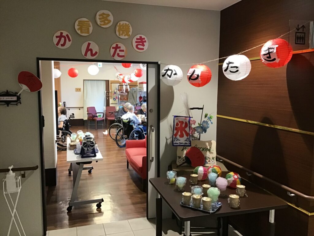 ご利用者様にも、うちわや提灯作りなど、お手伝いしてもらいながら