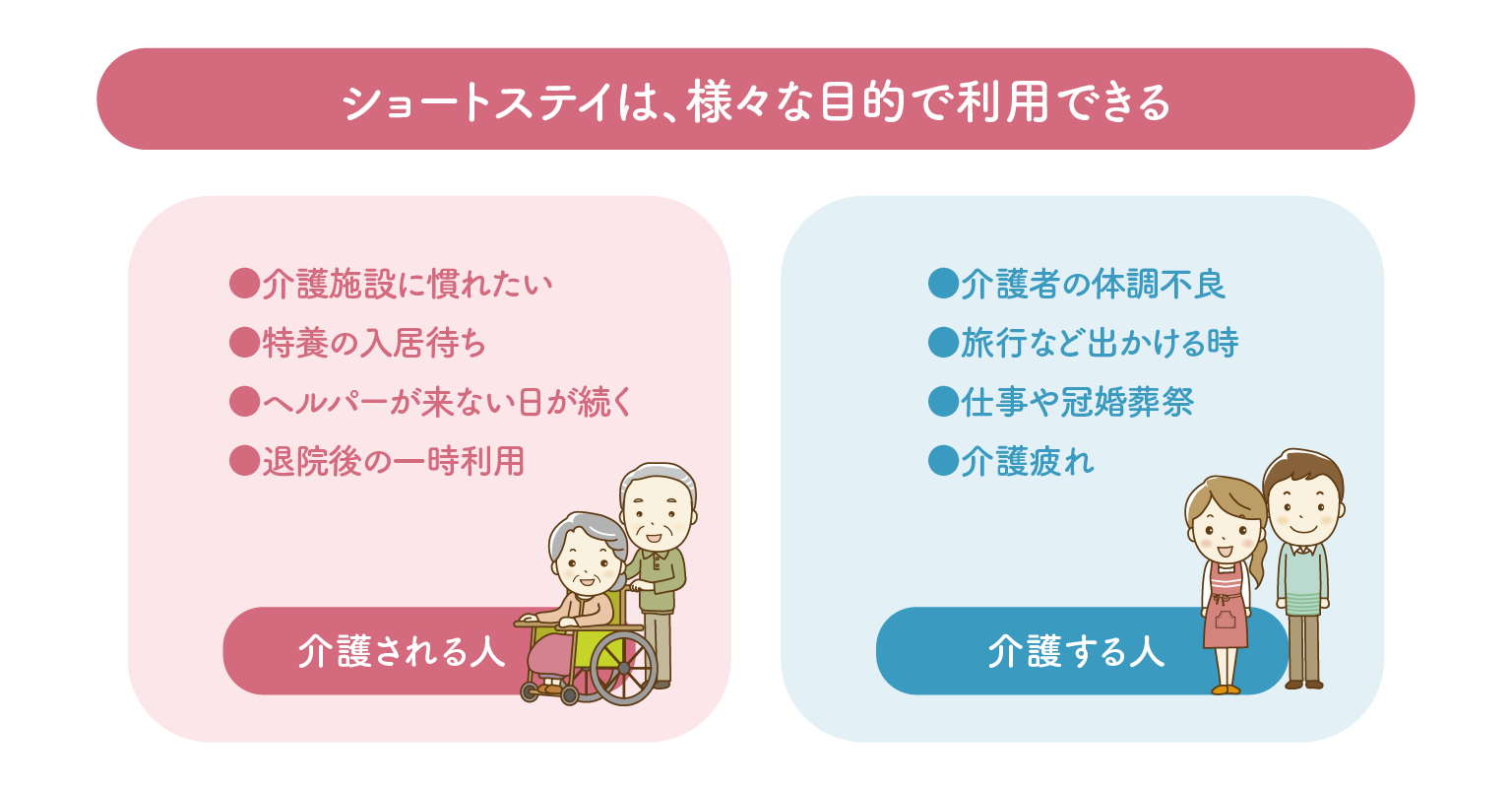 ショートステイとは、高齢者が一時的に特別養護老人ホームに入居し、一定期間のみ利用するサービスです。通常は数日から数週間程度の期間で利用され、入居者は施設内で生活をし、介護や生活サポートを受けることができます。