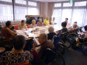 この活動の最大の特徴は、当施設の入居者様が講師を務めたり、主催者となって発足した活動があることです。同年代の方々が生き生きと活動される姿を見て、「自分もやろう!」と奮起される方も少なくありません。