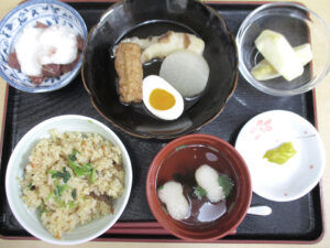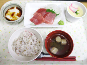 メニューは、旬の食材にこだわるだけでなく、季節を感じさせるものや行事に関するものをお出ししたり、2種類の主食(菜)からお好みのメニューを選べる「セレクト食」等、イベントメニューも実施しています。おやつにお出しする手作りのオリジナルスイーツも好評です。