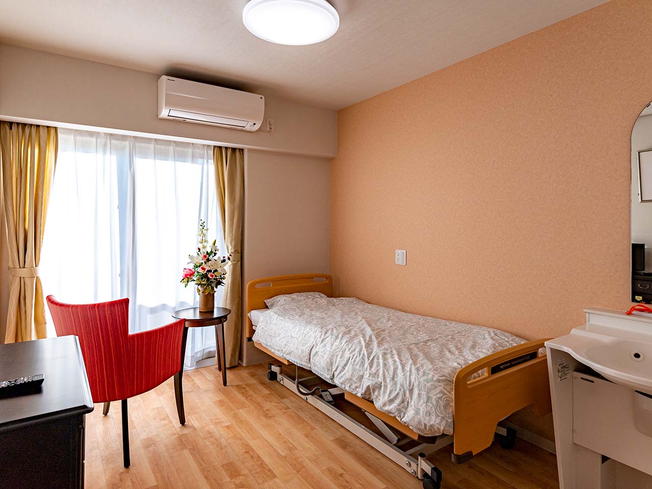 当施設は全居室が個室となっており、入居されている皆様のそれぞれのプライベート空間が確保され、プライバシーもしっかりと守られています。