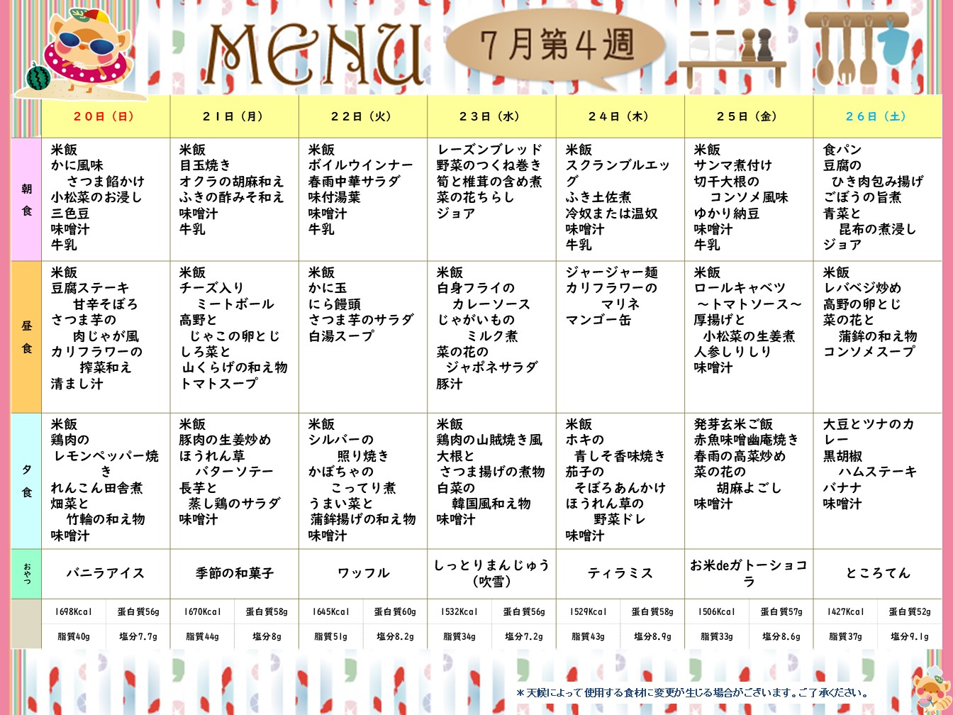 7月第4週献立表(7/20~7/26日)