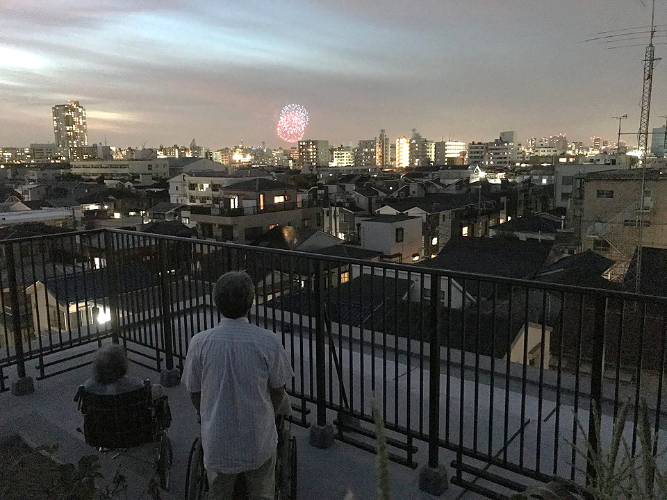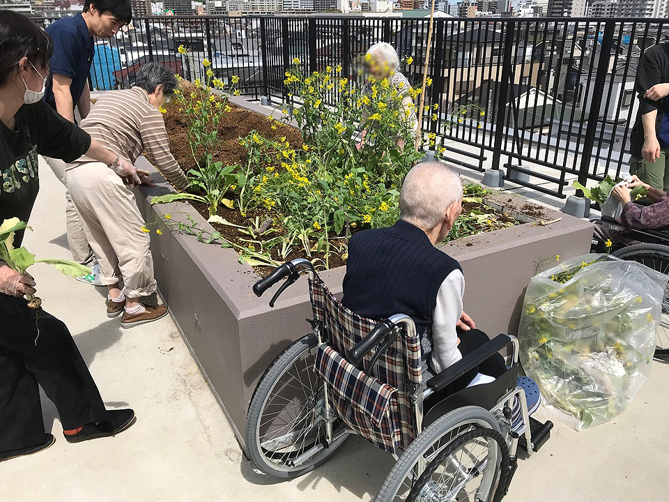 昼食やおやつをスタッフと一緒に作ったりするだけでなく、屋上で花火を見たり、施設菜園で収穫祭を実施したり、多種多様な企画で皆さまに楽しんでいただいています。